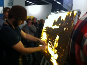 Packband in Schichten auf Leuchtkasten – super Idee, live-Performance!